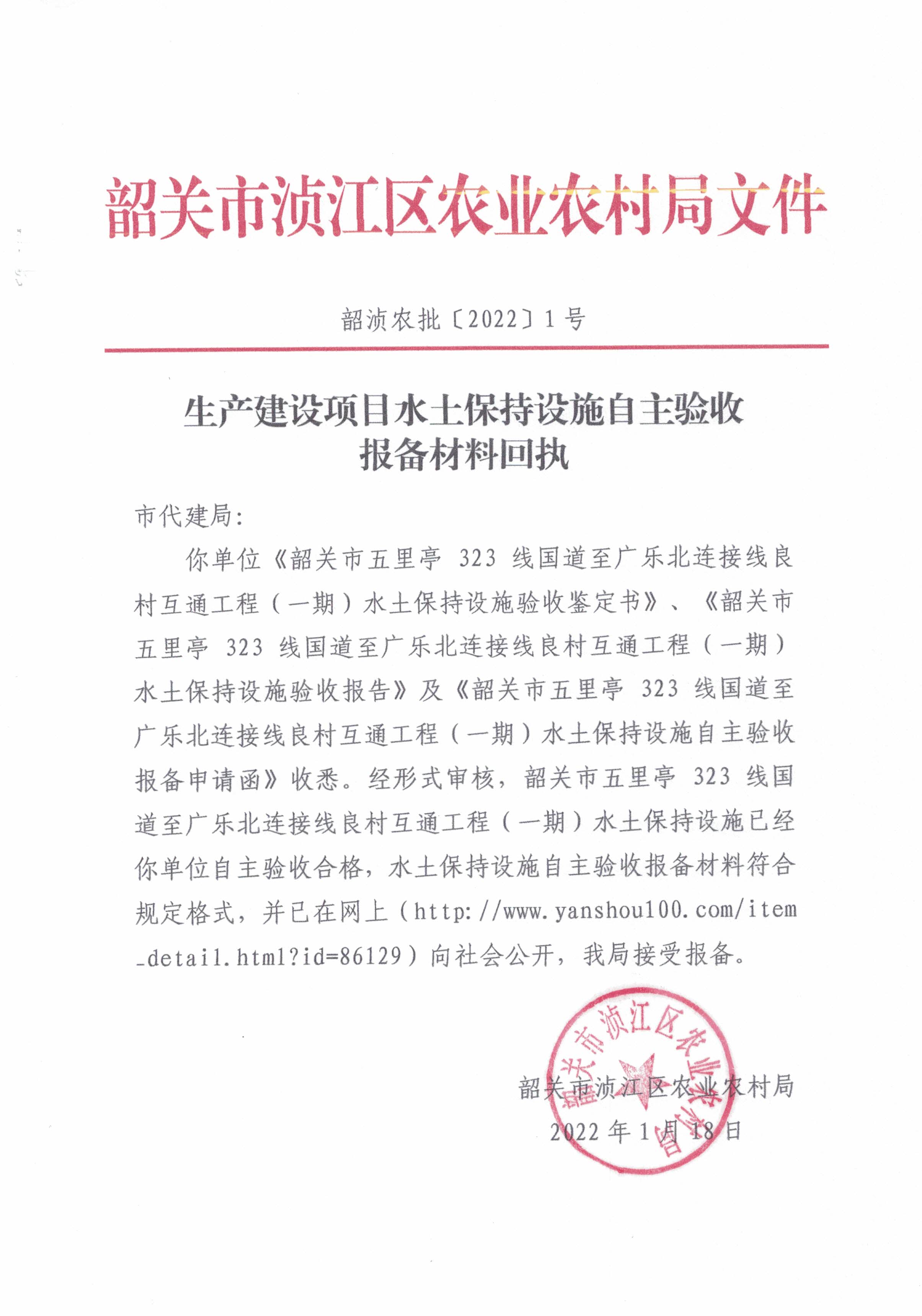 韶关市五里亭323线国道至广乐北连接线良村互通工程(一期)水土保持设施验收报告